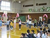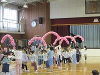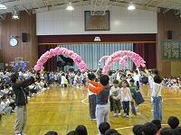 1年生が「入場」してきました。4年生の代表が,「花のアーチ」をセットして迎えています。