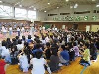 プレゼントの後は,1年生からの「お礼の発表」です。「かわいい歌声と振り付け」のプレゼントです。体育館が一気に笑顔で包まれました。