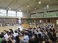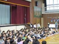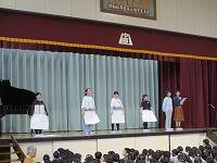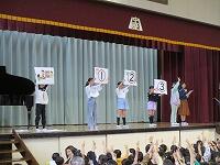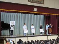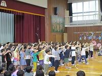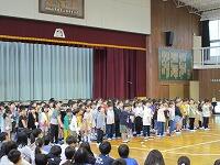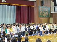 「1年生の発表」の後は,「全校合唱」です。曲は,今月の歌の「やあ!」です。みんな元気よく歌っています。