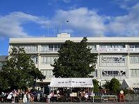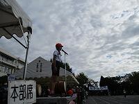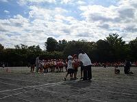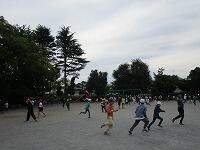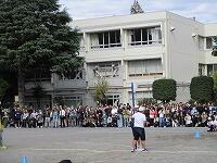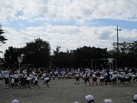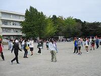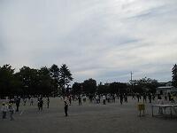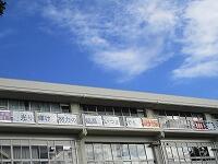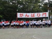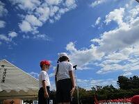 雲が広がっていますが,晴れています。職員の打合せの後,始まる前に,職員で「気合!」を入れました。