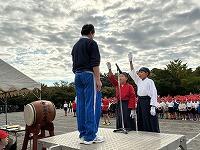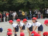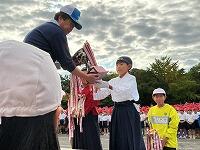 「表彰」です。青木校長先生から,白組に「優勝トロフィー」が授与されました。「応援賞」は,紅組です。「紅白対抗リレー」は,低学年の部で白組に,高学年の部で紅組に,それぞれ「優勝トロフィー」が授与されました。