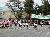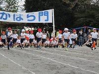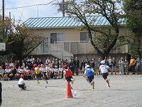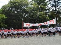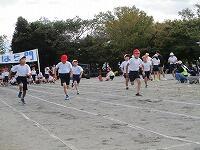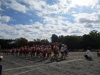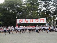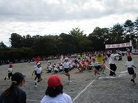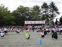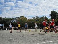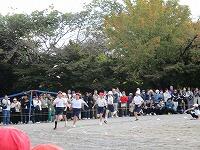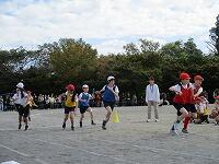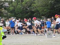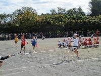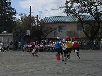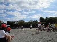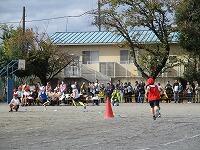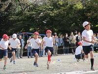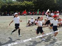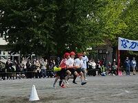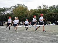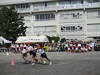 紅組も白組も頑張っています! 接戦でしたが,紅組の赤チームがトップでゴールしました。