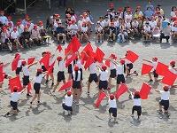 次は,フラッグを振って,きれいにまとまっています。きれいに揃ったフラッグの振る音が,バサッ,バサッと聞こえてきます。