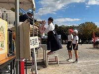 特別種目「低学年紅白対抗リレー」です。くじを引いて,コースを決めます。