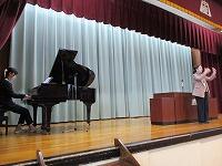 最後は,「校歌斉唱」です。川本先生と吉井先生が,指揮とピアノ伴奏を行いました。今年初めての「校歌」は,上手に歌うことができましたか?
