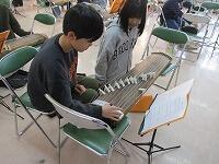 今日は,6年生が音楽室で「日本や世界の音楽に親しもう」という内容で,『お箏教室』を行いました。講師は,地域在住のお箏の専門家の朝生花蓮先生です。「日本に長く受け継がれてきた伝統や文化に親しみ,そのよさを感じ取ることができるように,歌唱と鑑賞とを関連させながら学習を進めていくこと」と,「諸外国に伝わる音楽も鑑賞し,それぞれの国のよさを感じ取ることで親しみをもち,身近なものにしていくようにすること」がねらいです。