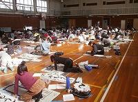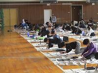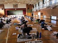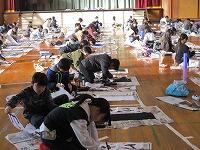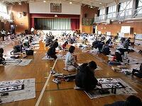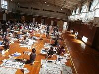 今日は,先週の5・6年生に続き,3・4年生が体育館で『席書会』を行いました。書くことに集中して取り組みました。