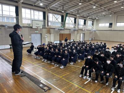 3月10日(火)5校時、1年生を対象に福島林間学校に向けた事前学習会を体育館で実施しました。