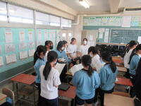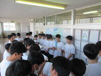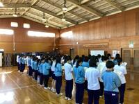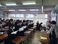6時間目には教務より、式典に参加する際の心構えや正装、礼儀作法、式の流れについての説明がありました。また、起立・着席や礼の練習も行いました。最初はなかなか揃わない場面もありましたが、繰り返し練習する中で、少しずつ動きが揃うようになってきました。