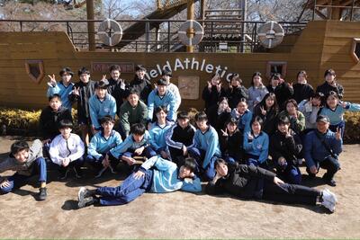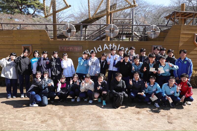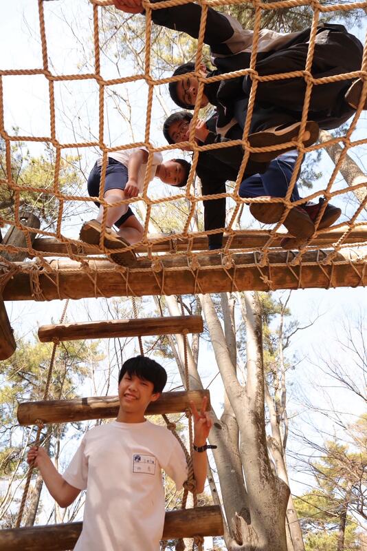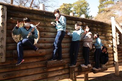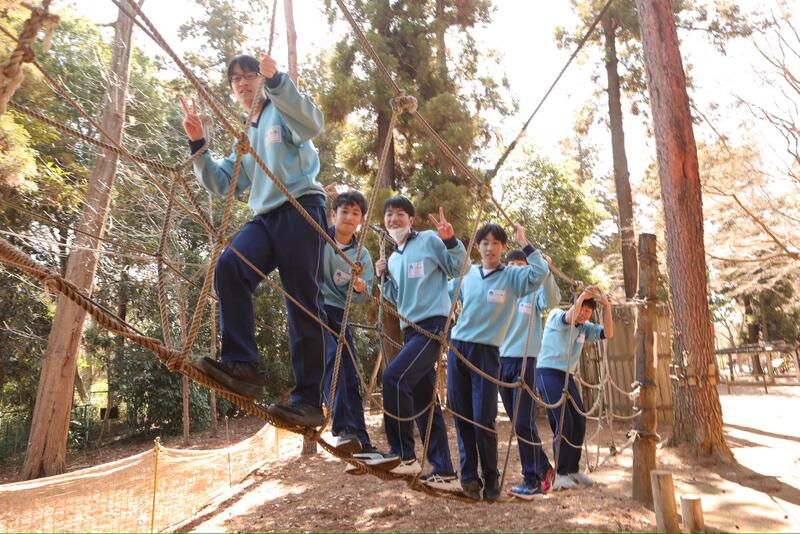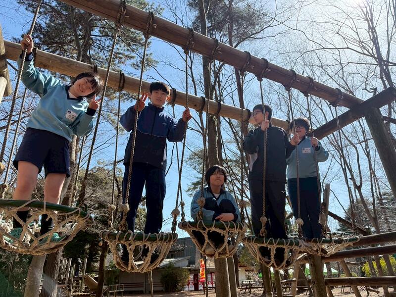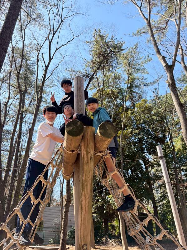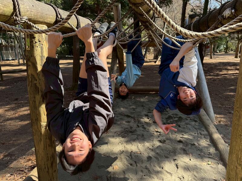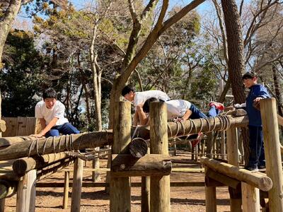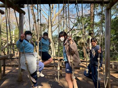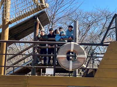 強風の中、最後の校外学習として清水公園に行ってきました。東武野田線の柏駅改札内で集合し、チェックをもらってから、電車に乗りました。クラスごとの集合写真を撮り、アスレチックスタートです。