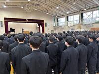 午前中の卒業式予行に続き、1年生は真剣な表情で耳を傾けていました。