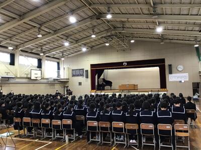 本日は、卒業式に向けて1・2年生で合唱練習を行いました。