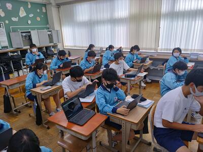 全校が体育館に集まれず、各学年の発表を教室からリモートで鑑賞する形です。