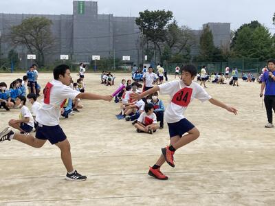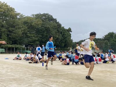駅伝の部では,男子Aチーム,女子Aチームが共に第5位に入賞を果たすという見事な成績を収めました。この結果で,男女共に11月4日に行われる千葉県中学校駅伝大会への出場権を獲得しました。また,男子BチームもBチーム中で6位入賞となりました。ロードレース大会でも,男子の部で保科君が5位入賞,女子の部で帯刀さんが3位入賞です。男女共に県大会出場を果たせたのは,もちろんAチームの選手ばかりでなく,Bチームやロードレースに出場した選手も含め,駅伝部全員の努力の成果です。駅伝部のみなさん,おめでとう!!県大会もがんばりましょう。