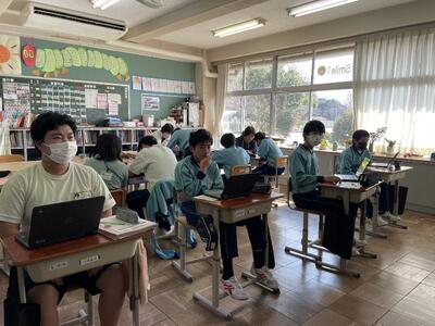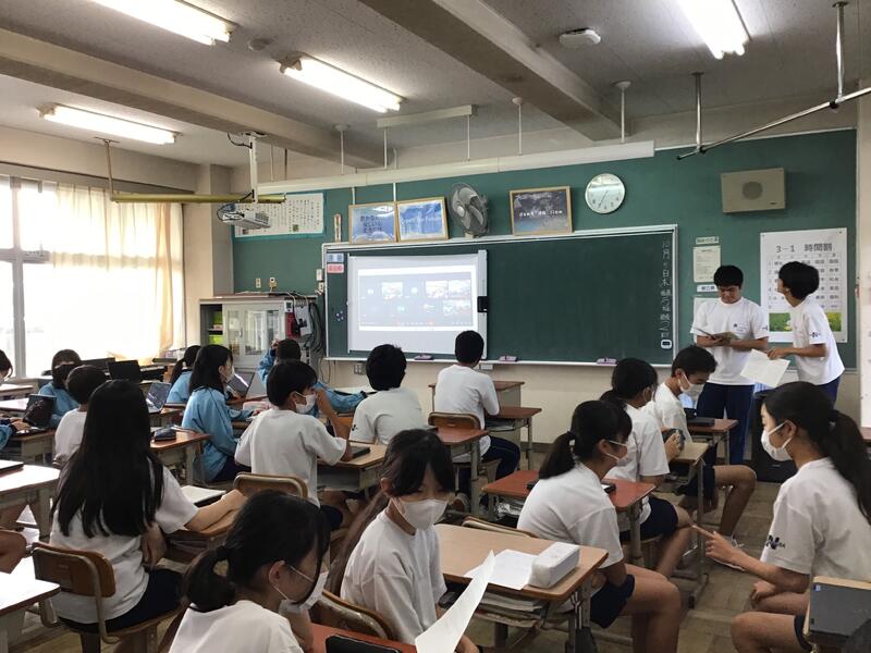 10月の本番に向けて、生徒たちはこの授業の経験を活かして、さらに成長してほしいと願います。本番は、1つの教室に3年生の2グループ、2年生の2グループ、1年生の2グループがシスター学級交流でお互いのプレゼンテーションを見合います。