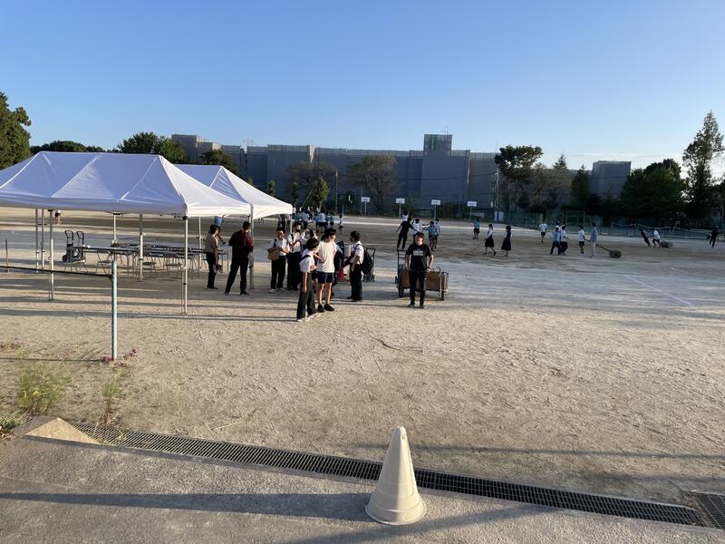 今回は、防災安全課の方にもご来校いただき、テントの設営(なんと180㎝の身長でも立っていられました)、簡易ベッド(主に高齢者の方向け)の組み立て、倉庫の備品点検を行いました。そしてまた新たな課題も見つかりました。