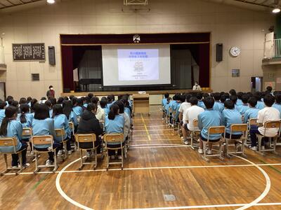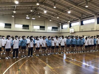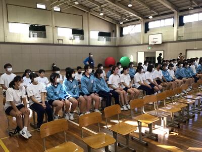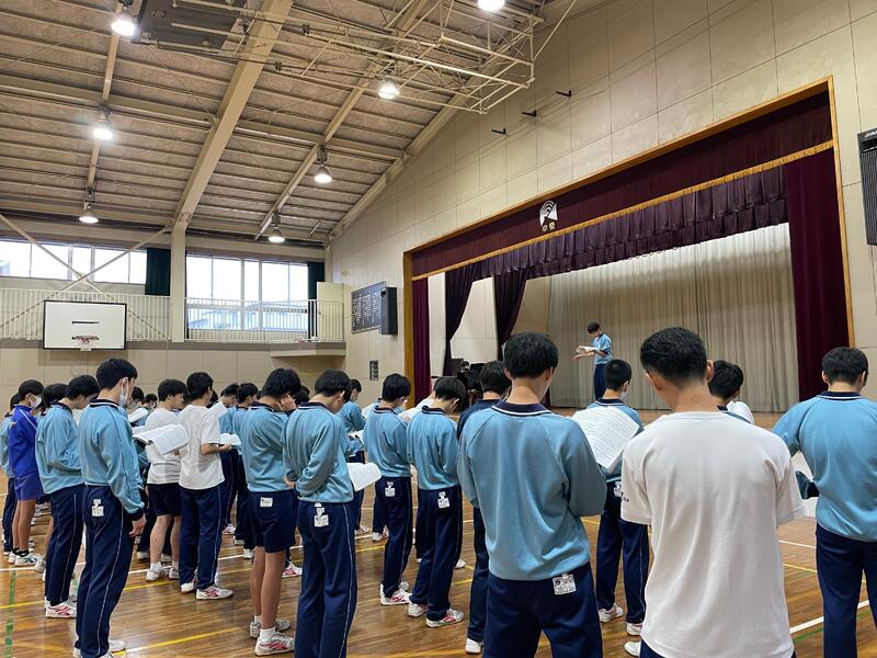 まず、コロナがあけてからはじめて全校生徒が体育館に入りおこなうことができました。