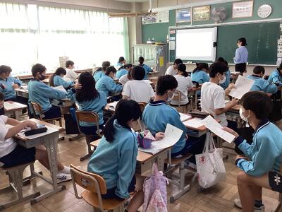 本日、教育実習生の岡野さんが3年3組で精錬授業を行いました。