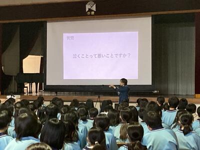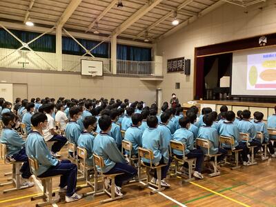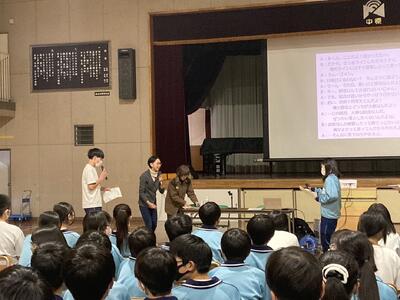 5時間目に東葛地区少年センターから警察職員である山本先生、大倉先生、梶原先生をお招きし、薬物乱用防止教室を全校でおこなっていさだきました。