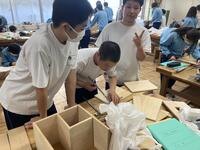 技術の授業で本棚を制作しています。