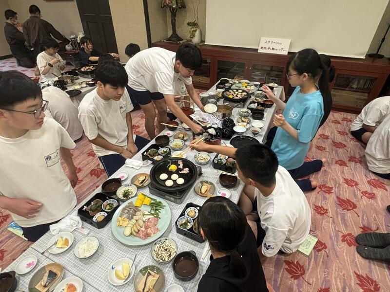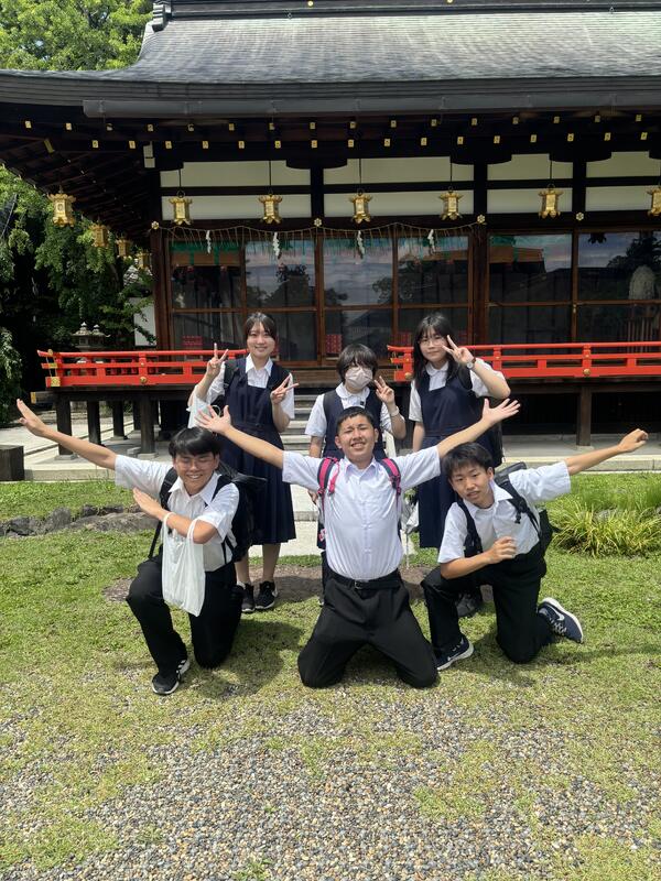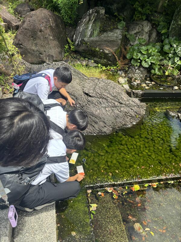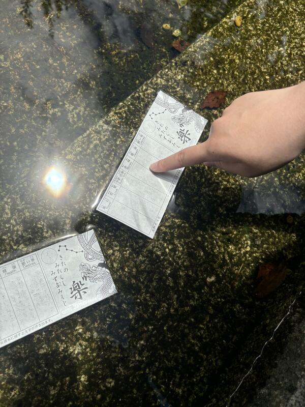清水に浮かべると文字が浮き出る占いも班員全員(担任も笑)仲良くやってみました!