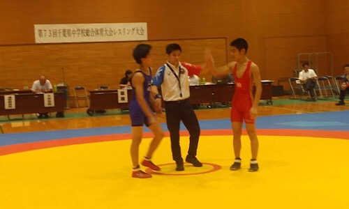 7月31日、野田市関宿公園体育館において千葉県総合体育大会レスリング競技の部が開催され、中原中学校から3年生の関武一さんと2年生の金澤空大さんが出場しました。結果は関さんが52㎏級で5位、金澤さんが75㎏級で1位に入賞しました。おめでとうございます。