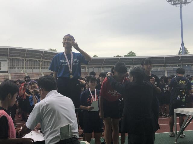 7月27日、陸上部が天台スポーツセンターにおいて、千葉県総合体育大会に臨みました。予選を抜けて準決勝、決勝へと駒を進めた選手は、明日も頑張って下さい。