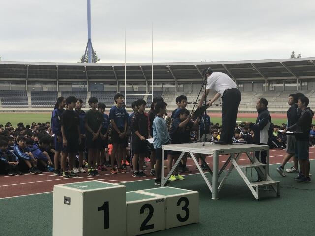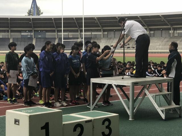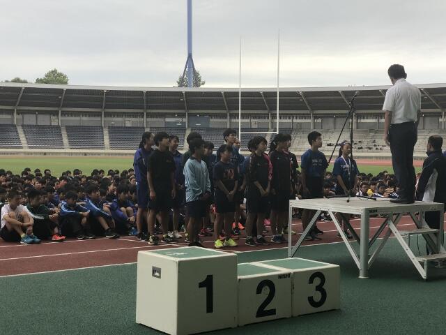 7月13日、柏の葉競技場において行われた柏市総合体育大会陸上競技の部で、中原中学校陸上部が男子の部、女子の部ともに優勝し、総合優勝という素晴らしい結果を残しました。壮行会での「陸上は個人戦ではなく団体戦です」という言葉を見事に実現しました。続く県総体、関東大会も頑張ってください。応援しています。