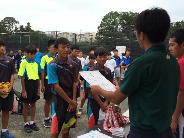 8月7日、富勢総合運動場において、第14回柏市招待関東近県中学生ソフトテニス研修大会が実施され、中原中学校が男子団体1位リーグで3位に入賞しました。新人戦に向けて頑張ってください。