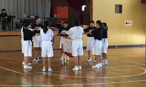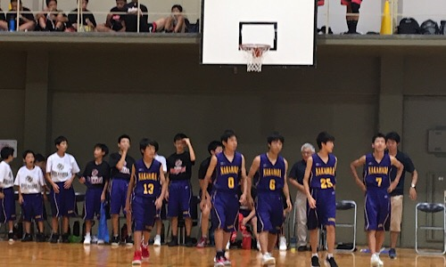 7月28日、山武市立松尾中学校体育館において、中原中学校女子バスケットボール部が千葉県総合体育大会に臨みました。1回戦の相手はいすみ市立大原中学校。序盤こそ競り合ったものの、徐々に点差を広げ、快勝しました。目標である、ベスト16を達成しました。おめでとうございます。このチームで少しでも長く戦えるように、明日も頑張ってください。