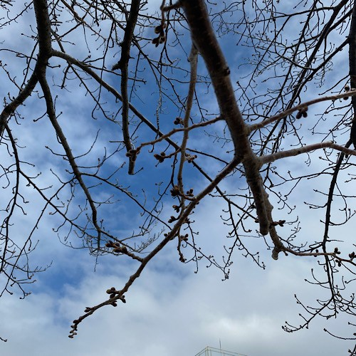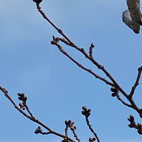 気象庁は東京の開花を宣言しましたが、正門の桜はまだ開いていません。正門の桜が満開のころに、入学式ができることを祈ります。