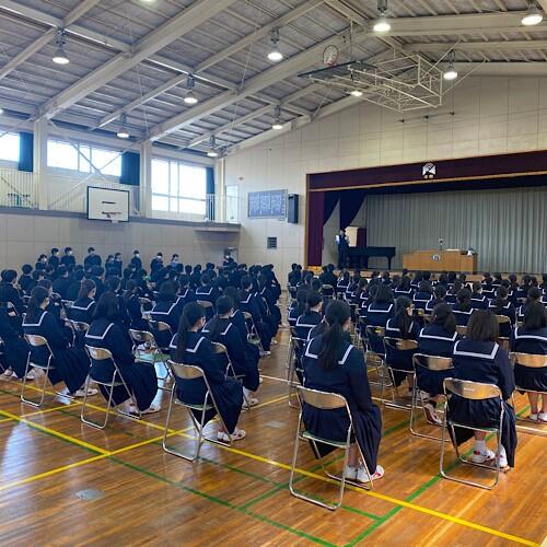 2校時は1,2年生とも今年度最後の学年集会を実施しました。2年生はオンラインで、1年生は体育館でソーシャルディスタンスを保ちながらの実施となりました。各学級や委員会ごとに成果と課題が確認されました。次年度のさらなる成長に期待します。