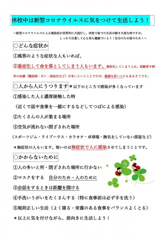 新型コロナウイルスに気をつけて生活しよう!