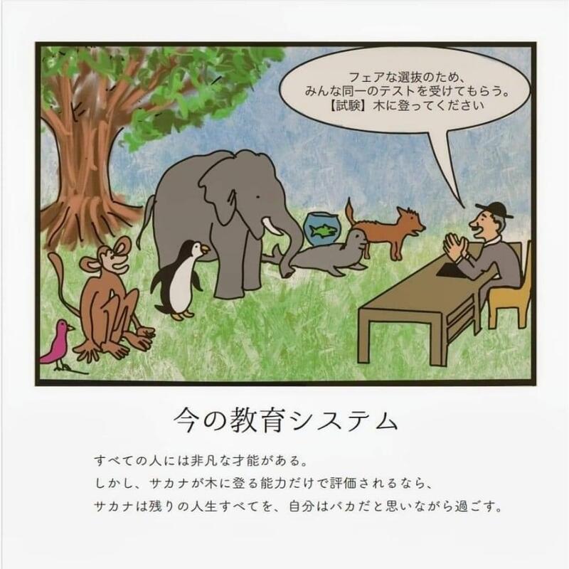 でも、サカナが木に登る能力だけで評価されるなら、サカナは残りの人生を、自分はバカだと信じて過ごす。」