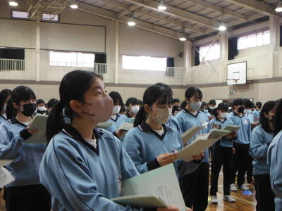 3年生を送る会で予定している「全校合唱」の練習を行いました。