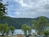 おはようございます。林間学校2日目の朝を迎えました。生徒たちの部屋はまだ静まり返っています。起床まであと30分です。外の様子は、朝早いからでしょうか西湖畔からの富士山方面は、まだ霧がかかり曇っています。