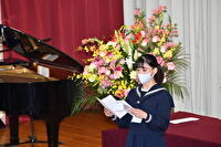 着任式、始業式は、各教室にオンライン配信を行いました。校歌は清聴ですが、新3年生の江口さんと小椋さんが音楽室より指揮と伴奏を行いました。新2年生の中村さん、新3年生の尾形くんが新学年の抱負を語ってくれました。明日からの学校生活が楽しみです。