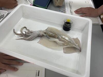 1年生の理科の授業にて、イカの解剖を行いました。