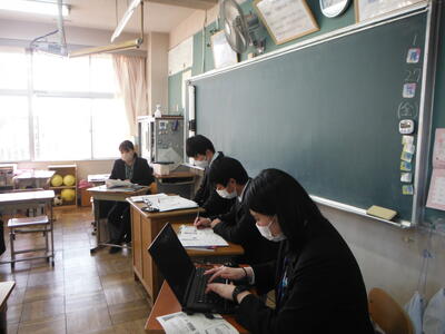 中原小よりお二人の先生が異校種体験で中原中学校の1日体験に来られました。