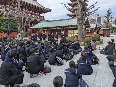 柏駅での出発チェックを行い、班別に電車で浅草寺まで向かいました。