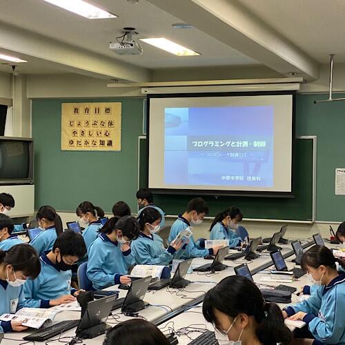 コンピュータ室では、3年生がプログラミングについて学んでいます。小学校でも必修となりました。プログラミングは今後ますます重要になってきます。