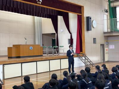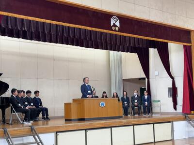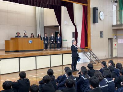 校長先生からは、今年度新しく変わった学校教育目標「他者と協働し、よりよい生き方を創造する生徒の育成」についてと今年度迎える本校40周年に向けてのお話がありました。