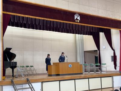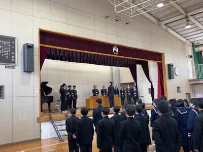 先生方の自己紹介や生活の決まり、学年目標が発表されました。中学校生活で初めての後輩ができる2年生は先輩としての見本となる姿を見せていってほしいです。その第1歩となる入学式に向けた合唱練習では姿勢を正して、素敵な歌声で練習する姿はとても素晴らしかったです。