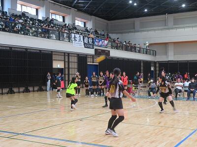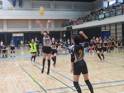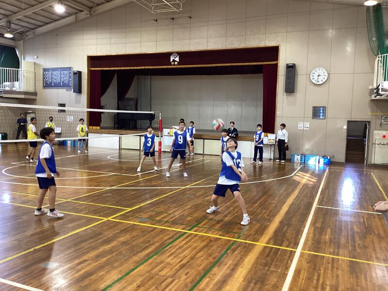 保健体育では、バレーボールの授業を行い、各チームで目標を決めて試合を行いました。