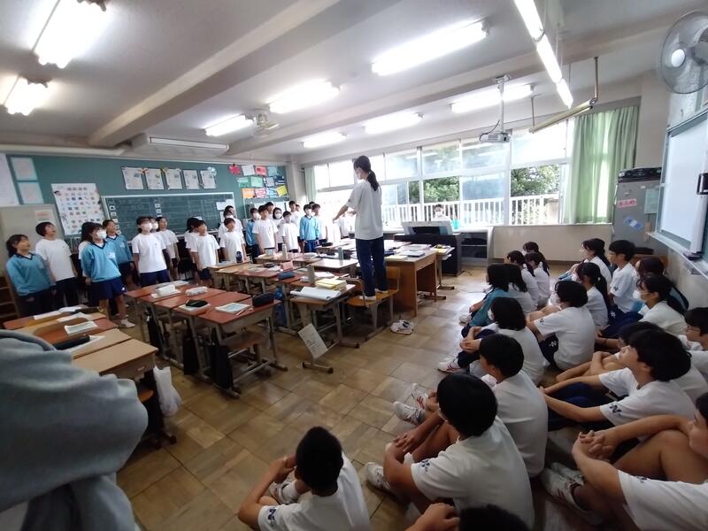 10月9日(水)の6校時に1学年は学年合唱と学級交換会を行いました。