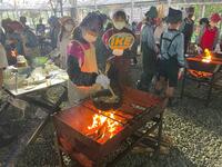 なんとか火を起こして、班員で協力して作りました!