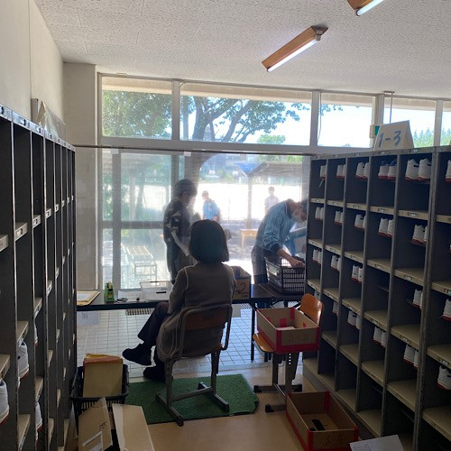 生徒たちが下校した後、先生たちで掃除と消毒を行っています。