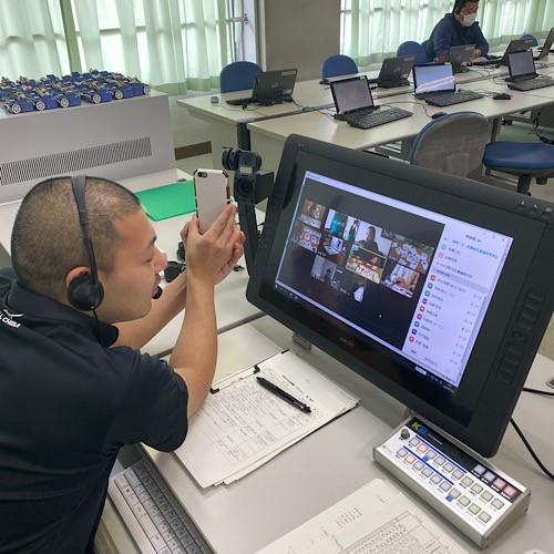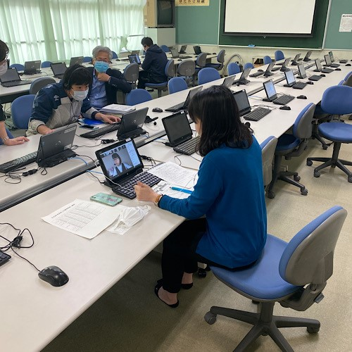 学校の段階的な再開がアナウンスされましたが、コロナの第2波、第3波に備えて、対面とオンラインのハイブリッドで授業を進めるべきだと考え、現在、Zoomを活用して学級会や質問室を設定しています。今日も何人かの先生が取り組んでくれました。1年1組の牧野先生は、学級会で集まった生徒たちに英語の課題でもある、アルファベットカードを並べるゲームを、参加者で競争しながら実施していました。オンラインでの授業に向けて、我々教師が研修を進めていかなければならないと感じています。