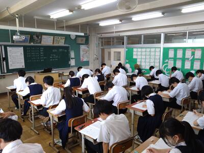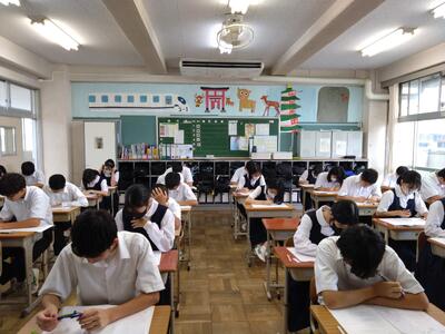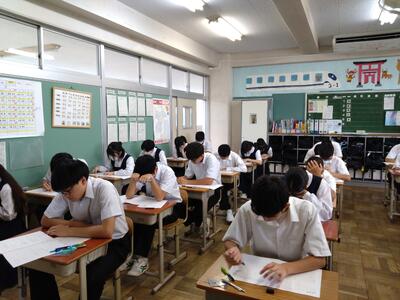 テスト中は緊張感があり、集中して取り組み、何度も解き直す生徒が多く見られました。