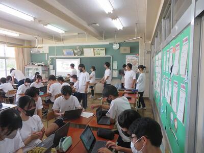 最終ゴールは、1つの教室に1年生・2年生・3年生・保護者の皆様の前で発表をします。
